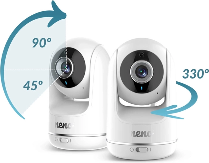 Otočná kamera s horizontálnym aj vertikálnym náklonom a praktickým priblížením vám poskytne prehľad o postieľke aj okolí. Na výber máte montáž na stenu alebo uchytenie na pružný držiak. Sledovanie teploty v izbe, LED indikácia úrovne hluku a možnosť pripojenia až 4 kamier robia z Neno Vista univerzálnu voľbu do každej domácnosti.