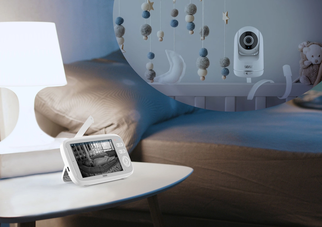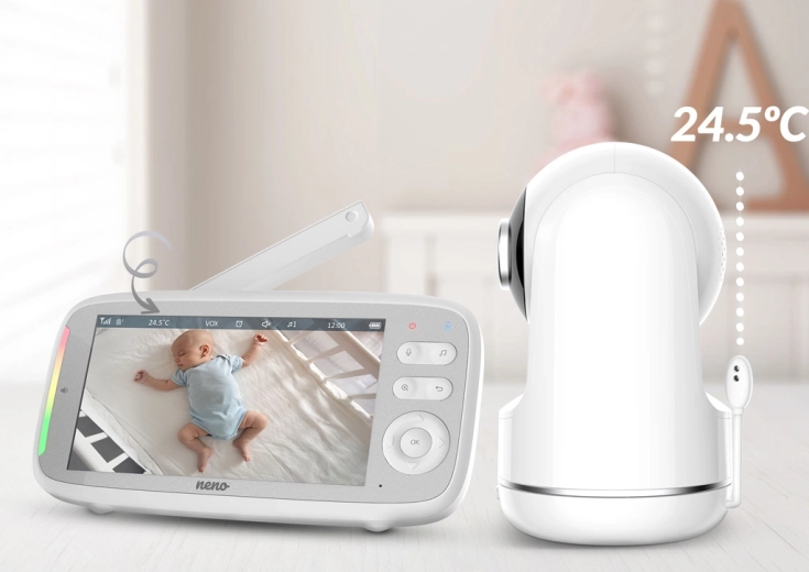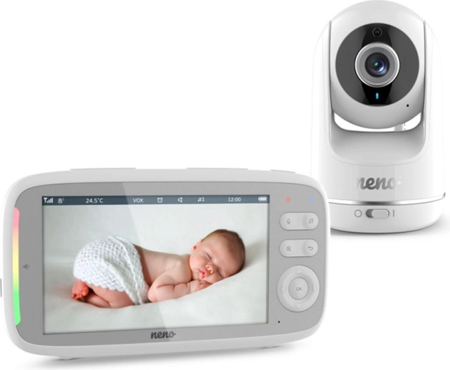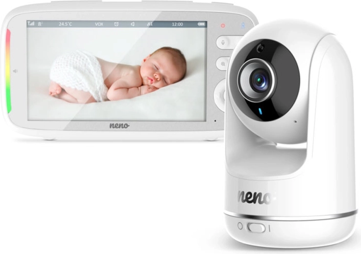 Majte svoje bábätko pod dohľadom vo dne aj v noci s video pestúnkou Neno Vista. Ponúka veľký 5" displej, HD 720p obraz, nočné videnie, a VOX úsporný režim. Vďaka otáčaniu kamery horizontálne aj vertikálne, monitoringu teploty a LED indikácii zvuku získate istotu aj pokoj doma aj na záhrade.