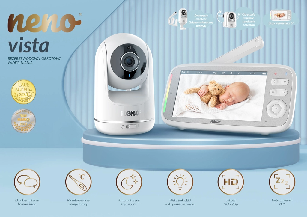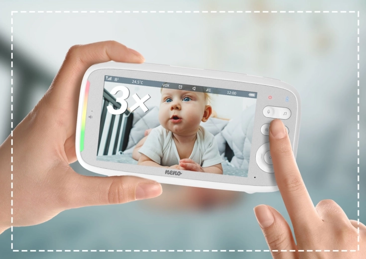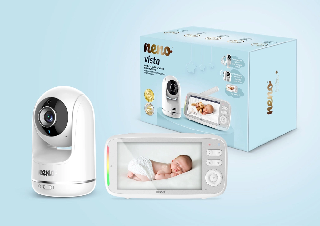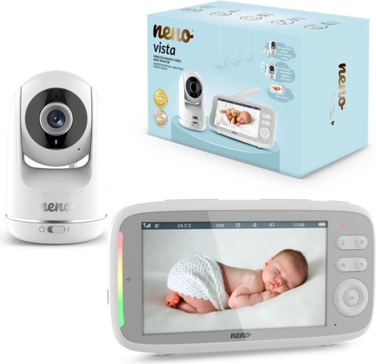 Neno Vista je spoľahlivá digitálna video pestúnka navrhnutá pre bezpečné a pohodlné stráženie detí. Široký 5" LCD displej zobrazuje čistý obraz v HD 720p kvalite a automatický nočný režim s IR LED zaistí jasné detaily aj v tme. Vďaka obojsmernej komunikácii môžete bábätko upokojiť na diaľku a s VOX režimom sa displej rozsvieti len pri zaznamenanom zvuku – šetrí tak batériu a predlžuje výdrž.