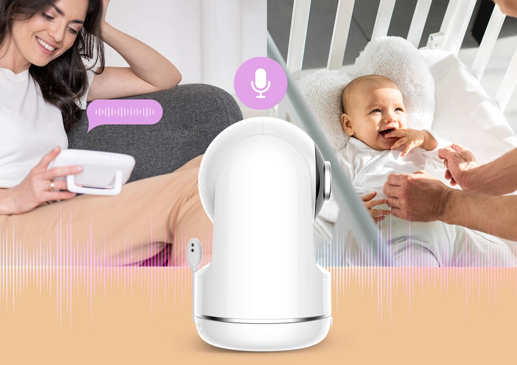 Horizontálny a vertikálny náklon s priblížením, vizuálny LED ukazovateľ úrovne hluku a talk-back funkcia vám dávajú úplnú kontrolu a možnosť dieťa upokojiť na diaľku.