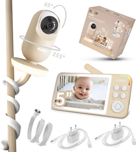 Neno Vedo Cream je spoľahlivá video pestúnka, ktorá vám zaistí maximálny prehľad o dianí v detskej izbe. Veľký 5'' farebný LCD displej poskytuje čistý obraz, automatický nočný režim zas jasné zábery aj v úplnej tme. Otočná kamera s diaľkovým ovládaním umožňuje sledovať široký priestor, zatiaľ čo 4× zoom priblíži každý detail.