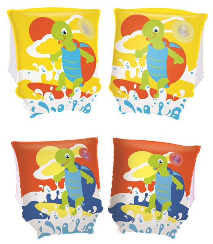 Veselé nafukovacie rukávniky s motívom korytnačky pomôžu deťom cítiť sa vo vode bezpečnejšie a zároveň si užiť veľa zábavy. Vďaka kompaktným rozmerom 23 × 15 cm sa ľahko nasadzujú, dobre držia na ruke a sú ideálne pre prvé krôčiky pri učení plávania. Dostupné v rôznych farebných variantoch (assort).