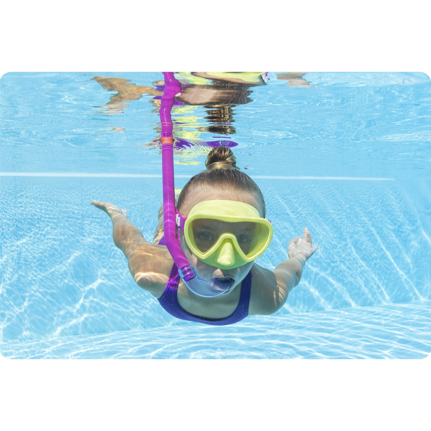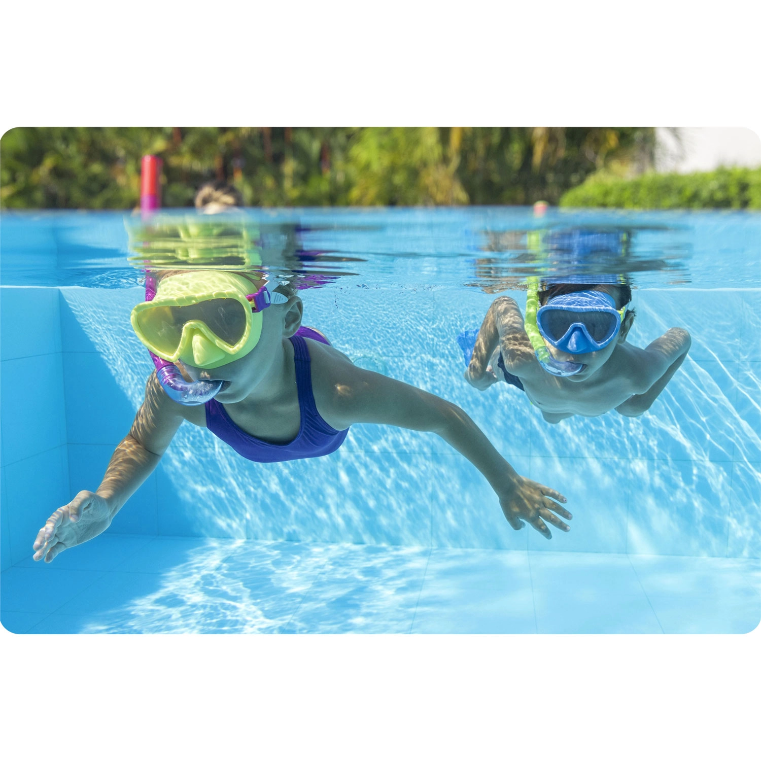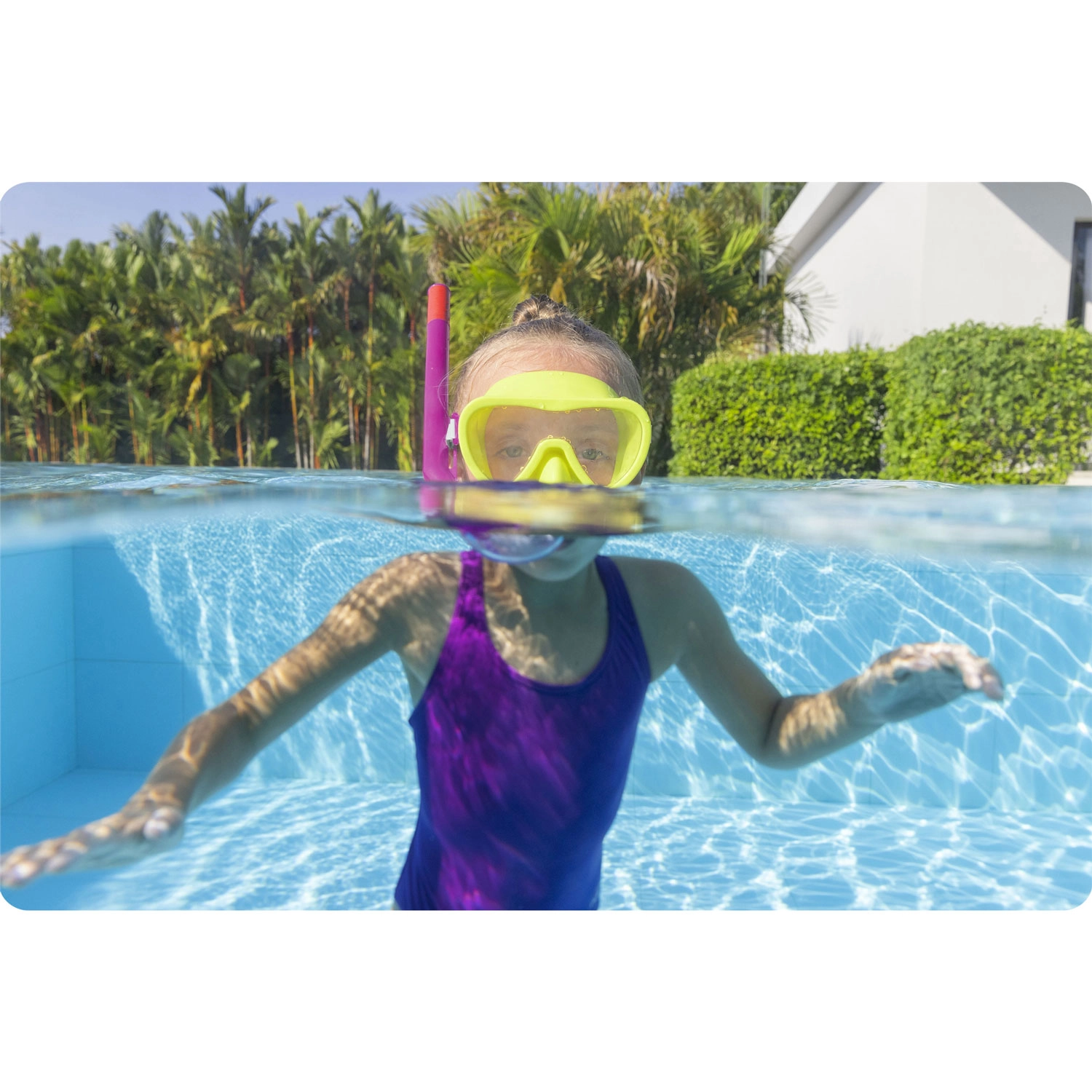 Detská šnorchlovacia sada BESTWAY ponúka všetko, čo malé deti potrebujú pre pohodlné a bezpečné prvé zážitky vo vode. Maska s odolnou polykarbonátovou šošovkou s UV filtrom zabezpečuje čistý výhľad a chráni oči pred slnkom, zatiaľ čo hypoalergénne materiály minimalizujú podráždenie citlivej pokožky.