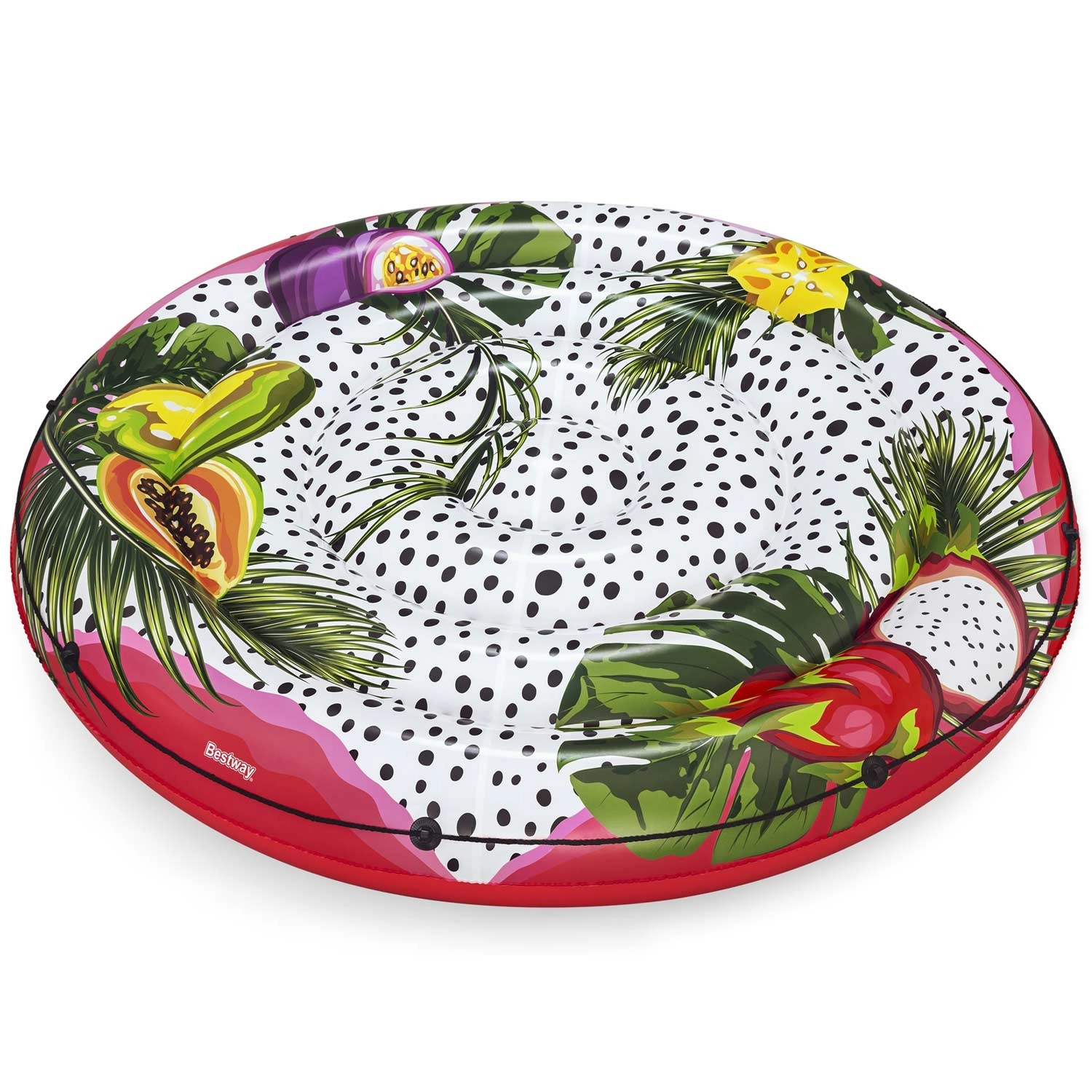 Objavte pohodlie a zábavu na vode s plávajúcim ostrovným matracom BESTWAY v XXL veľkosti. Vďaka priestrannej kruhovej ploche si vychutnáte relax vo dvojici, či už v bazéne, jazere alebo pri mori. Tropická potlač s ovocím a listami dodá vášmu letnému outfitu šmrnc a pritiahne pozornosť všade, kde sa objavíte.