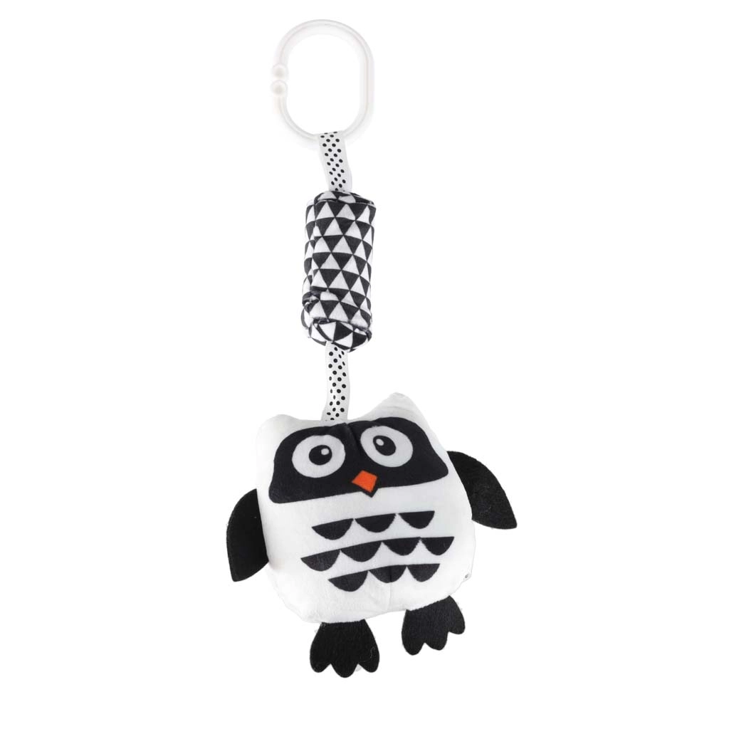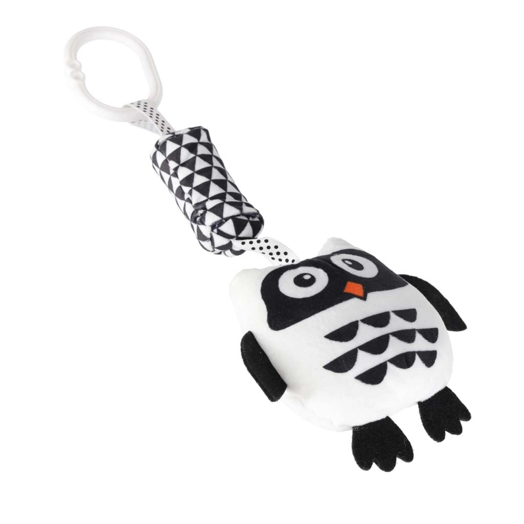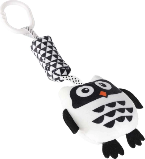 Roztomilá závesná sova v čierno‑bielom prevedení pre najmenších podporuje zrakovú stimuláciu, rozvoj zmyslov a zábavu na cestách. Vďaka praktickému klipu ju ľahko pripevníte na kočík, autosedačku aj postieľku. Mäkké materiály, rôzne textúry a hrkajúce/šuštiace prvky povzbudzujú uchopovanie a skúmanie.