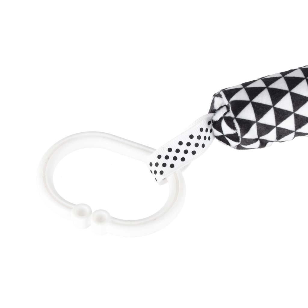 Vďaka univerzálnemu krúžku/klipu hračku ľahko upevníte na kočík, postieľku alebo nosič, takže vaše bábätko bude mať svoju obľúbenú zmyslovú hračku vždy po ruke – doma aj na cestách. Hrkálka a šuštiace detaily povzbudzujú sluchovú stimuláciu, zatiaľ čo rôzne štruktúry podporujú hmat a trénujú úchop.