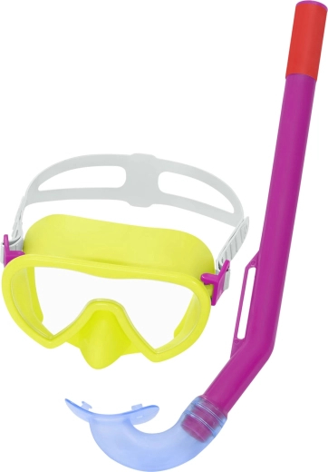 Objavte vodný svet s juniorským šnorchlovacím setom Bestway v žiarivo žltej farbe. Set obsahuje pohodlnú masku so širokým zorným poľom a UV ochranou a šnorchel s mäkkým silikónovým náustkom. Vďaka univerzálnej veľkosti, nastaviteľnému pásiku a tesniacej sukni bez latexu perfektne sadne a spoľahlivo bráni vnikaniu vody – ideálne na hravé leto pri mori aj v bazéne.