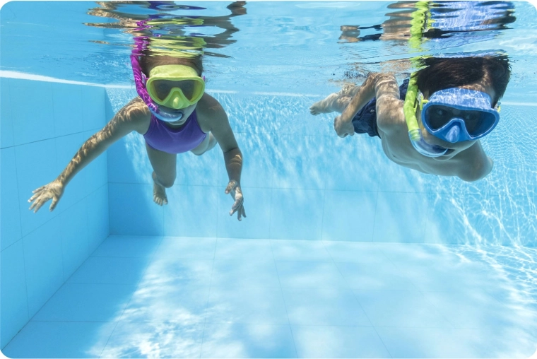 - Bezpečné dýchanie: šnorchel so silikónovým náustkom a koncovkou proti striekajúcej vode.