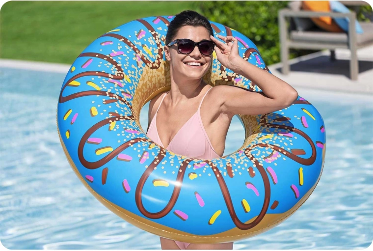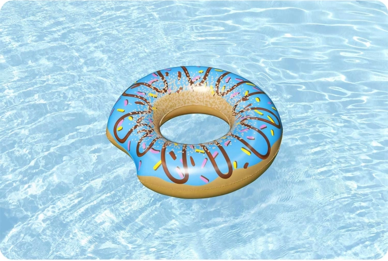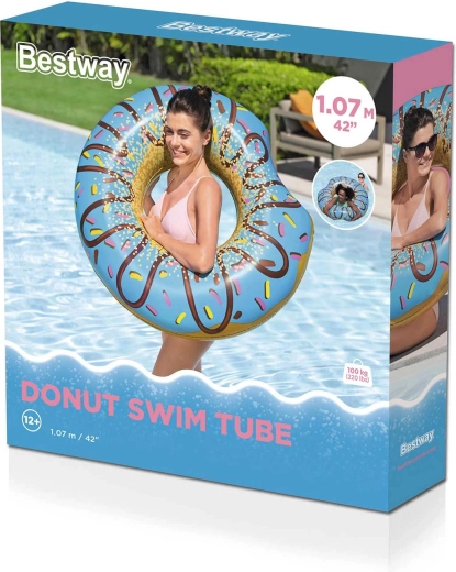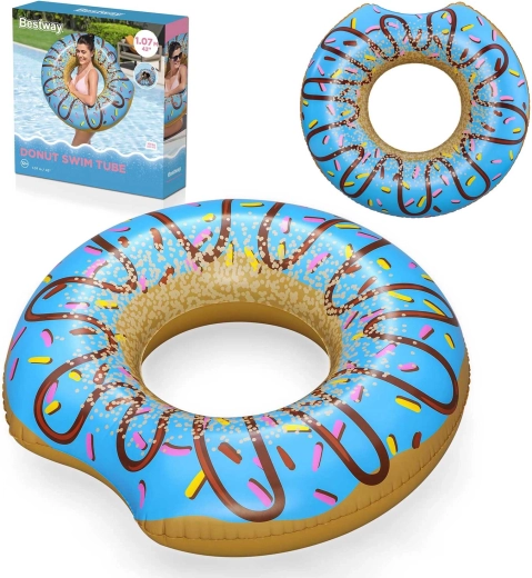 Užite si leto s hravým nafukovacím kruhom v štýle lahodného donutu s priemerom 107 cm. Vďaka odolnému PVC materiálu je kruh pevný, pohodlný a skvele viditeľný pri vode. Veľký priemer zaistí stabilné pohodlné ležanie aj pre dospievajúcich a dospelých a v balení nechýba ani opravná záplata pre bezstarostné používanie počas celého leta.