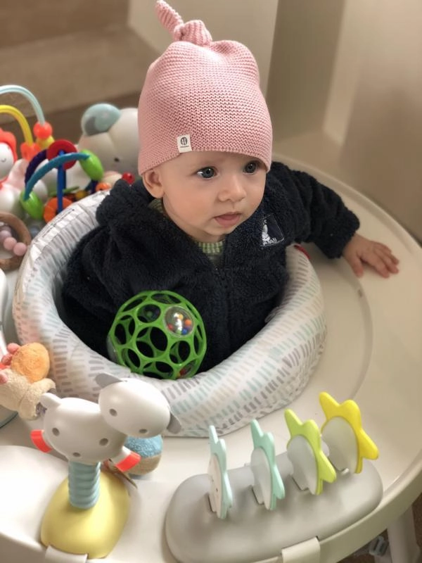 Tri priehľadné kapsuly s korálikmi vydávajú pri pohybe jemné hrkanie, ktoré podporuje sluchové vnímanie a zvedavosť.