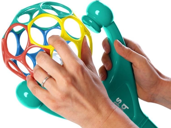 Vďaka odolnej plastovej konštrukcii a materiálom bez BPA, PVC, latexu a ftalátov je hračka bezpečná a pripravená na každodenné hranie. Jednoduchý tvar a jasné farby podporujú hrubú aj jemnú motoriku, koordináciu ruka–oko a zmyslové vnímanie.