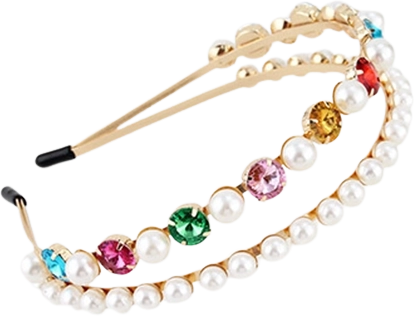 Táto štýlová dvojitá čelenka je navrhnutá tak, aby na hlave pevne držala a zároveň zostala pohodlná po celý deň. Kombinácia trblietavých drahokamov a jemných perál vytvára elegantný a očarujúci vzhľad, ktorý sa hodí k šatám aj ležérnym outfitom.