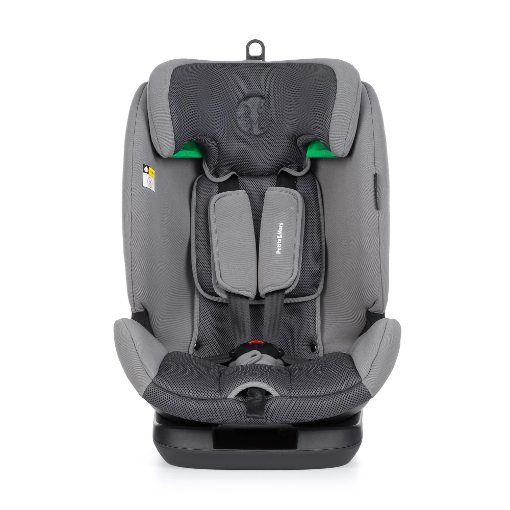 Autosedačka PETITE&MARS Prime Pro i-Size Grey Air je navrhnutá na dlhodobé a bezpečné používanie v kategóriách I/II/III (ECE R129). Vďaka pevnej inštalácii ISOFIX a smeru po jazde poskytuje stabilitu, zatiaľ čo 5-bodový bezpečnostný pás so systémom Fitwiz istejších menšie deti. Model AIR využíva priedušné materiály, ktoré zlepšujú cirkuláciu vzduchu a znižujú potenie.