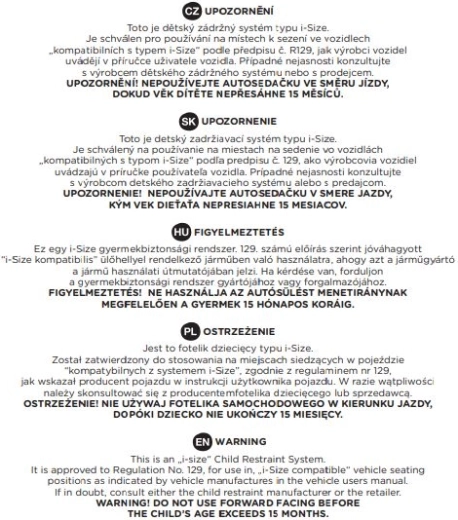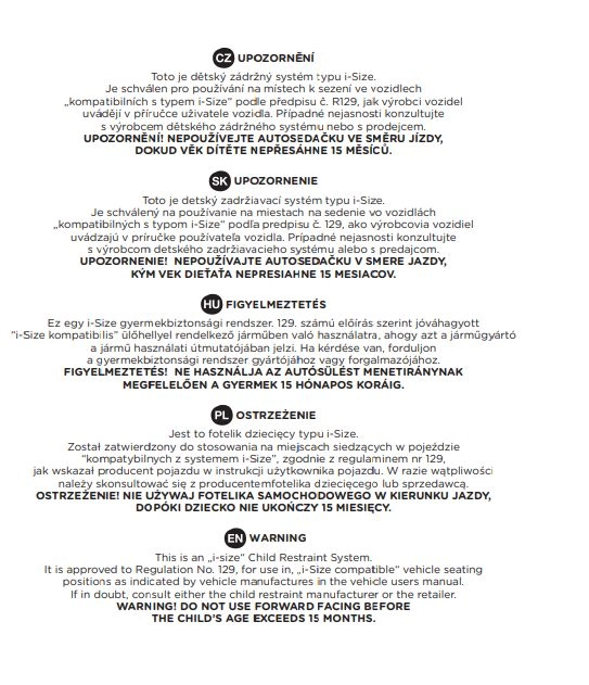 Spĺňa prísnu normu ECE R129 (i‑Size) a poskytuje pokročilú bočnú ochranu. Pre menšie deti (40–105 cm) je určená inštalácia proti smeru jazdy s 5-bodovými pásmi, pre staršie (100–150 cm) využijete vedenie pásu vozidla. Odnímateľný a prateľný poťah uľahčuje údržbu a udržiava sedačku hygienicky čistú.