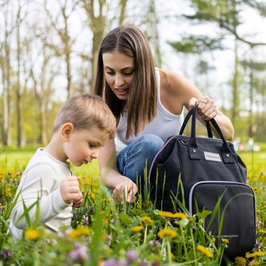 Užite si premyslené detaily: dve termovrecká udržia fľaštičky v správnej teplote, vodotesné vrecko bezpečne oddelí mokré veci, šnúrka na kľúče zrýchli hľadanie a zadný zips umožní bleskový prístup do hlavnej komory. Batoh ľahko pripevníte ku kočíku alebo k madlu kufra a vďaka svetlej podšívke vždy rýchlo nájdete, čo potrebujete.