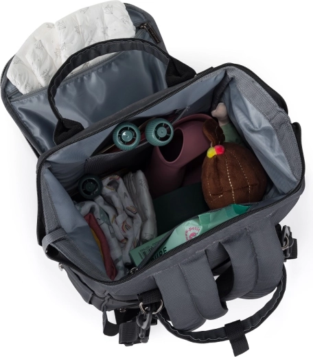 Až 11 vreciek vrátane 2 termo priehradiek na fľaštičky, vodotesného vrecka na mokré veci, vonkajšieho vrecka na obrúsky a šnúrky na kľúče udrží všetko na svojom mieste.