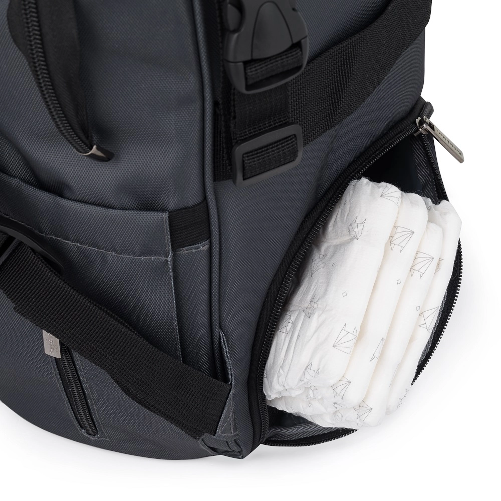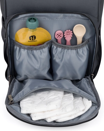 Premyslené detaily robia z tohto batohu spoľahlivého partnera: 11 vreciek vrátane 2 termo priehradiek na fľaštičky, vodotesných vreciek na mokré veci, sieťovaných vreciek pre dokonalý prehľad a vonkajších vreciek na fľašu aj vlhčené obrúsky. Nechýba šnúrka na kľúče, držiak na hračku/prívesok a popruh na uchytenie k madlu kufra. Svetlá podšívka zlepšuje viditeľnosť obsahu, aby bolo hľadanie rýchle a bez starostí.