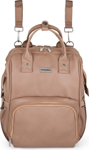 PETITE&MARS Jasper je moderný prebaľovací batoh, ktorý uľahčí každý deň s bábätkom. Vďaka chytrému členeniu, svetlej podšívke a širokému otváraniu na obojsmerný zips vždy rýchlo nájdete, čo potrebujete. Vodeodolný materiál zaistí jednoduchú údržbu a dlhú životnosť, zatiaľ čo elegantný dizajn v farbe Camel Beige sa hodí ku každému kočíku aj outfitu.