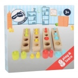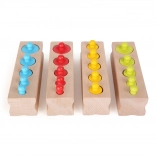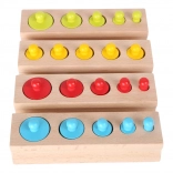 Drevené farebné valčeky pomáhajú deťom porozumieť vzorom a činiť rozhodnutia o správnom umiestnení.