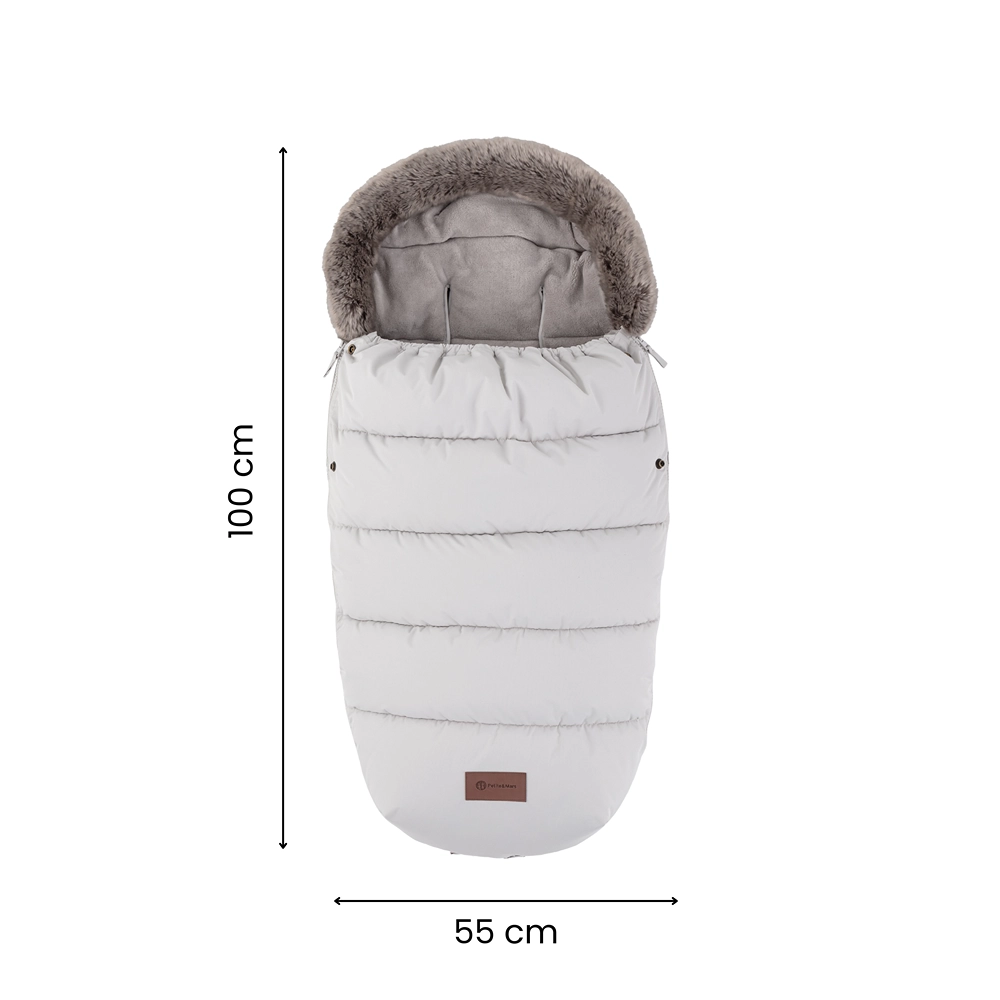 Hrejivý a univerzálny fusak do kočíka 4v1 na chladné dni. Ponúka extra teplo a mäkké pohodlie, je vodoodolný a vetruodolný (3000 mm) so šetrnou úpravou BIONIC-FINISH ECO. Vďaka 6 otvorom pre pásy sedí takmer do všetkých kočíkov, má odnímateľnú kožušinu a celoplošné zipsy na reguláciu teploty a jednoduché vetranie.