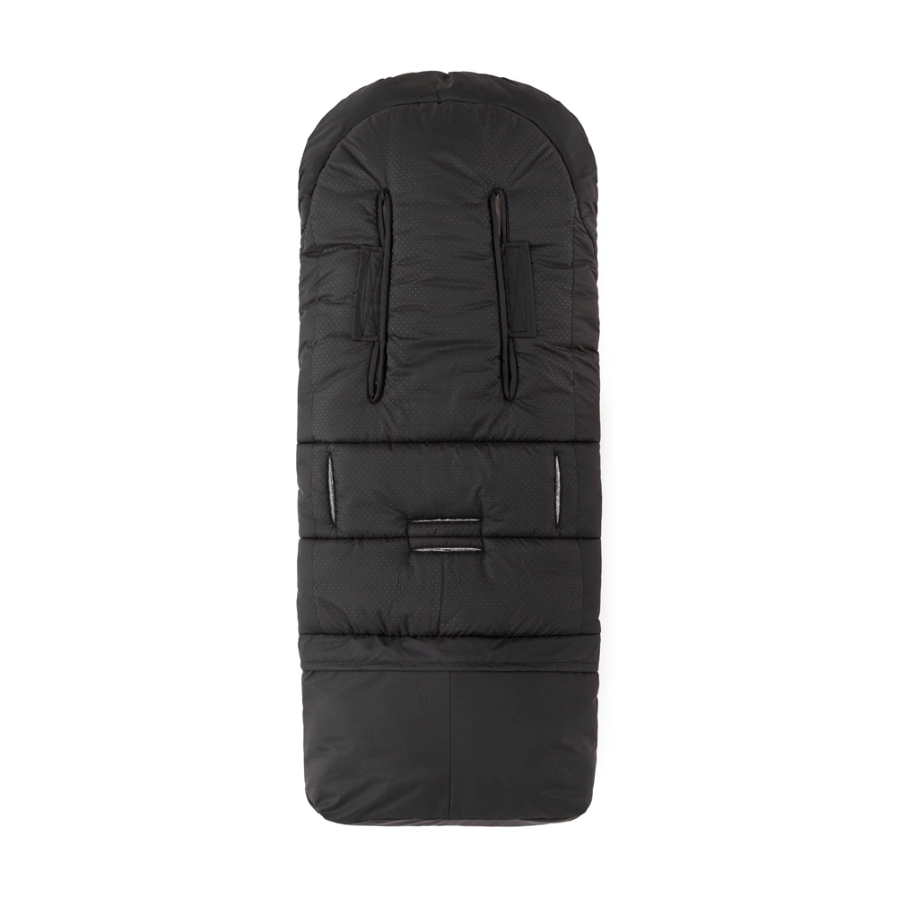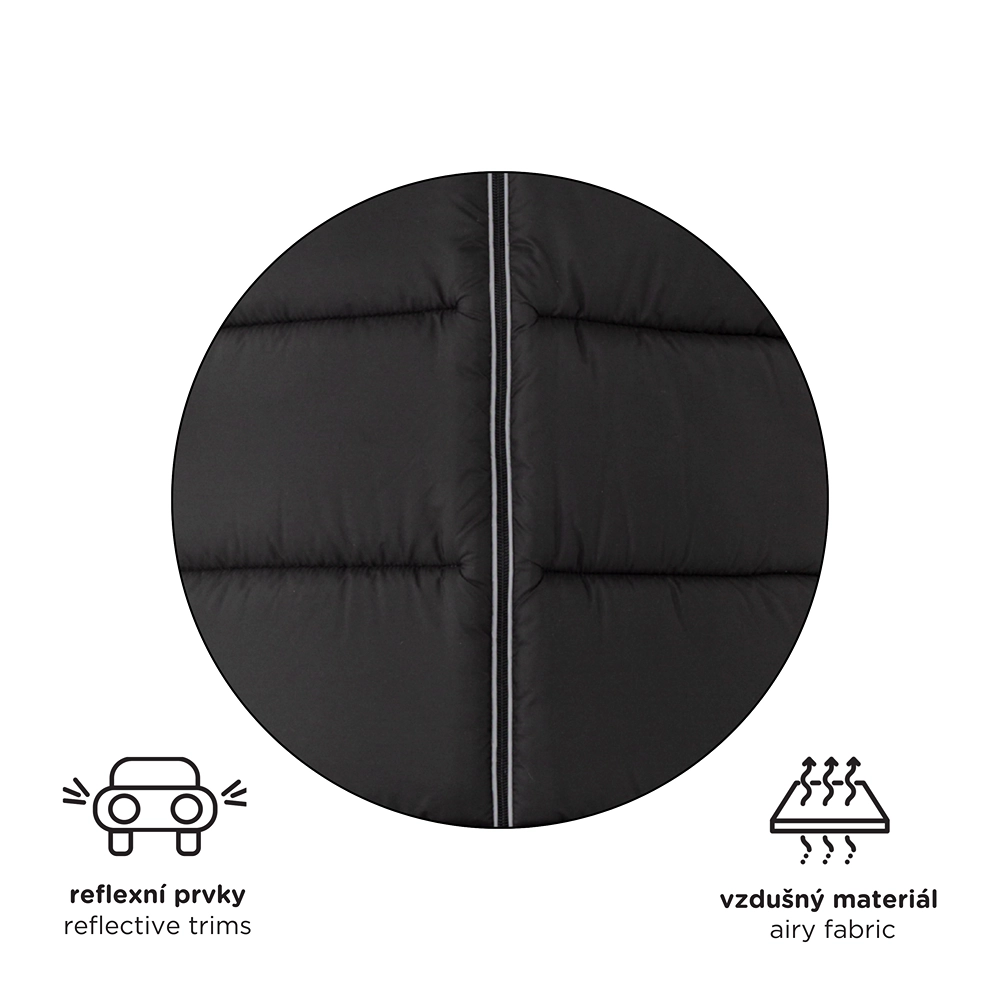 Premyslené vertikálne otvory pre bezpečnostné pásy zabezpečujú širokú kompatibilitu s väčšinou značiek kočíkov. Protišmyková zadná strana (ABS) bráni pohybu fusaku v sedačke a reflexné prvky zvyšujú bezpečnosť pri zhoršenej viditeľnosti. Stredový zips uľahčí rýchly prístup k dieťaťu a spodná, ľahko umývateľná časť je praktická aj pre obuté nožičky.