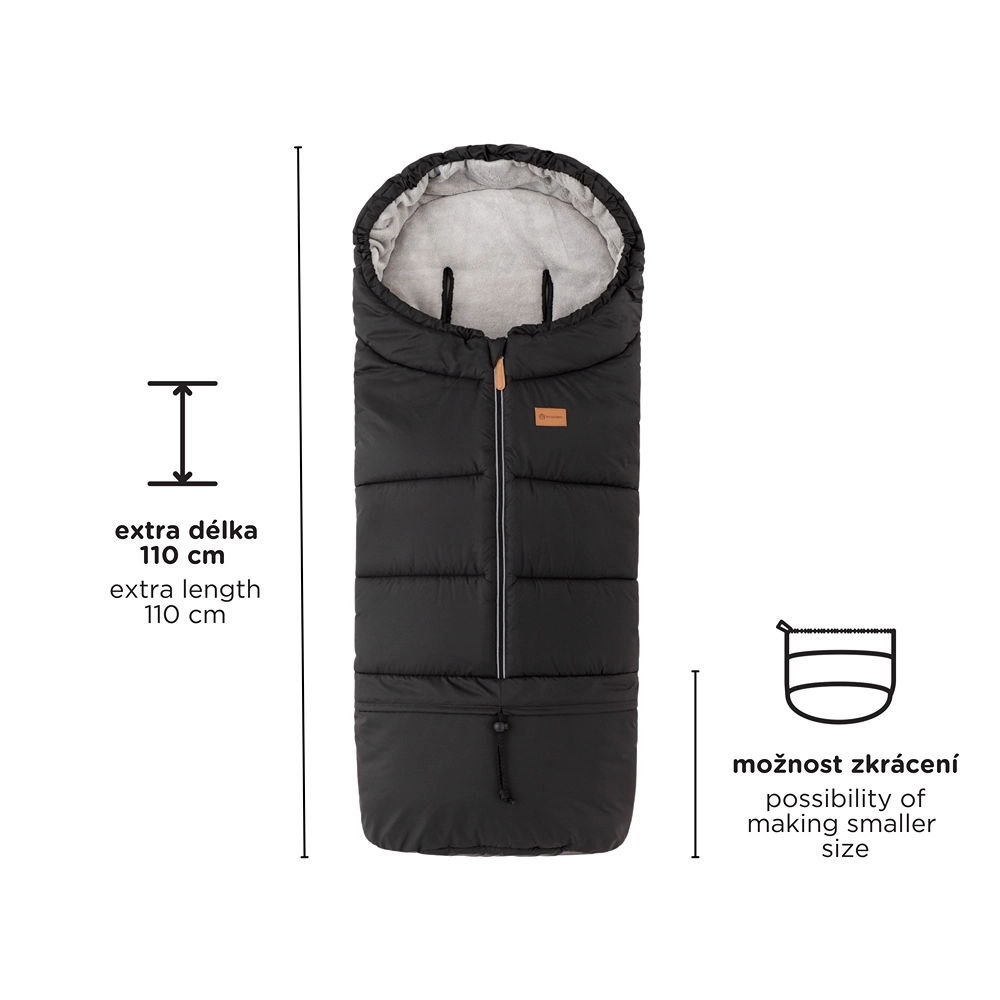 - 3v1 nastavenie dĺžky – odopnite nánožník a zmenšite fusak pre vaničku či autosedačku.