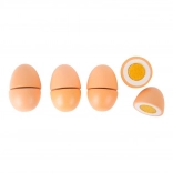 Malá noha drevená sada vajíčok je perfektný doplnok do detskej kuchynky. Vajcia sú spojené suchým zipsom, čo umožňuje jednoduché rozdelenie pomocou dreveného noža a rozvíja manuálnu zručnosť detí.