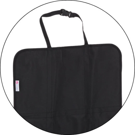 Vrchná časť slúži ako organizér – udržiava hračky, fľaštičky a drobnosti prehľadne uložené a ľahko dostupné deťom počas jazdy.