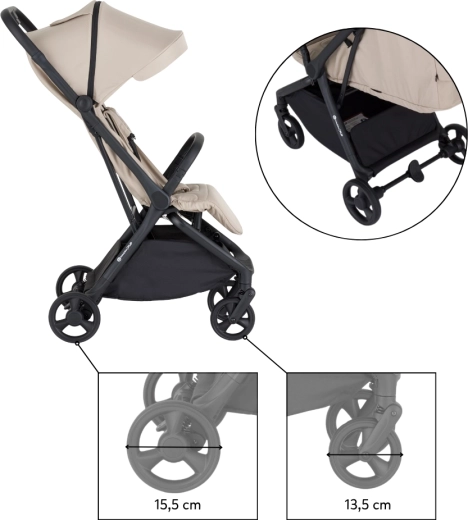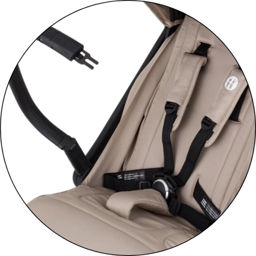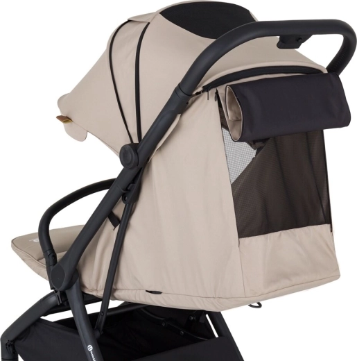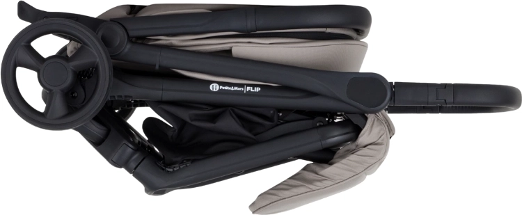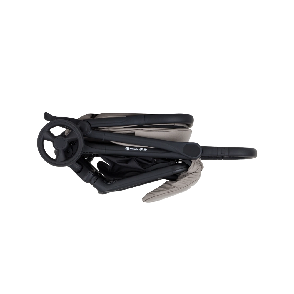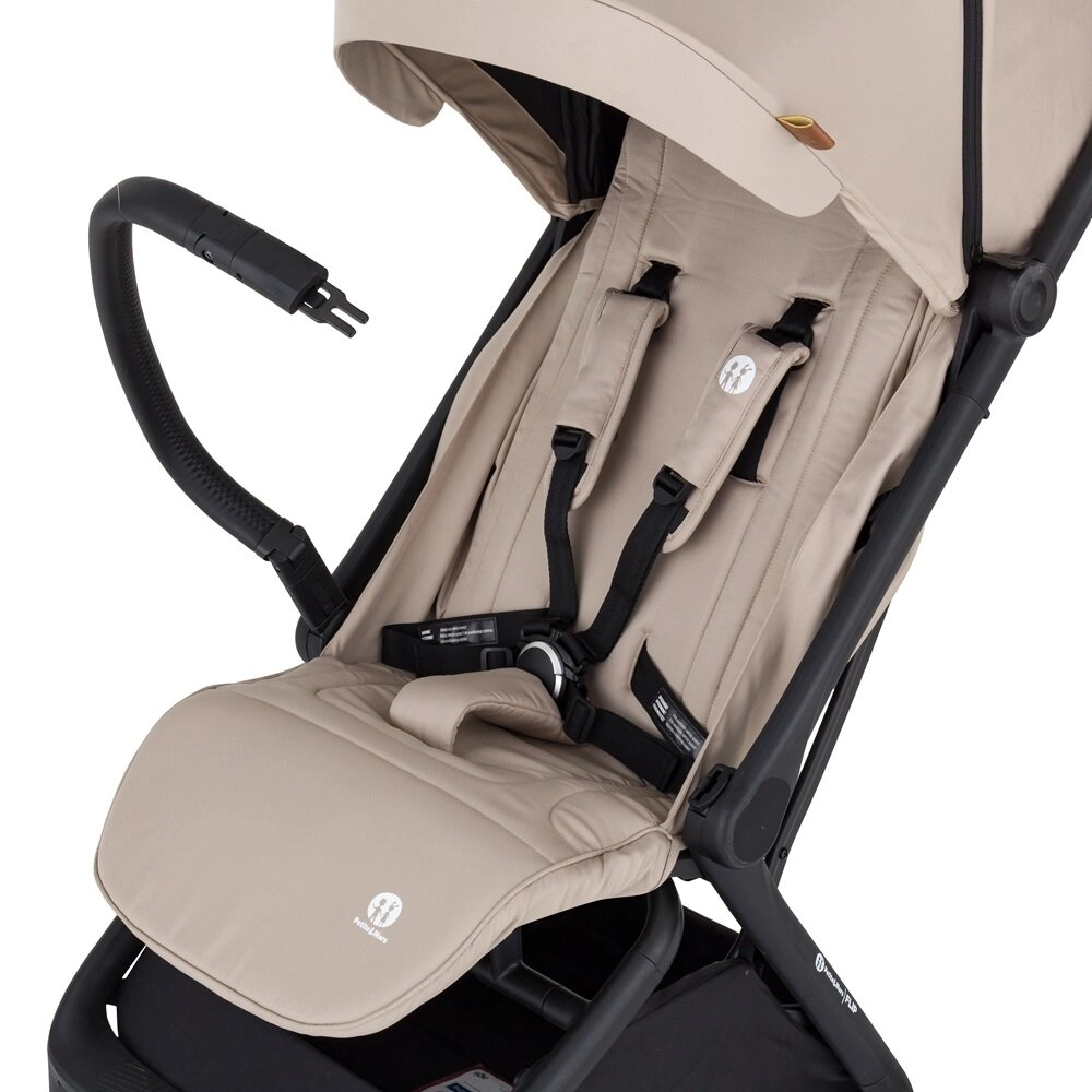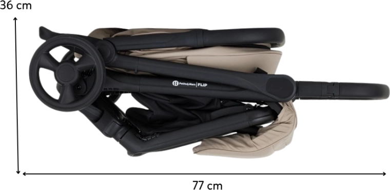 Petite&Mars Flip Tan Beige je praktický parťák na každodenné dobrodružstvá. Oceníte kompaktné rozmery, nízku hmotnosť 8,2 kg a rýchle zloženie jednou rukou, ktoré uľahčí presuny autom, vlakom aj lietadlom. Elegantný čierny rám, poťahy s prešívaním a detaily z eko-kože zvýraznia moderný vzhľad kočíka.