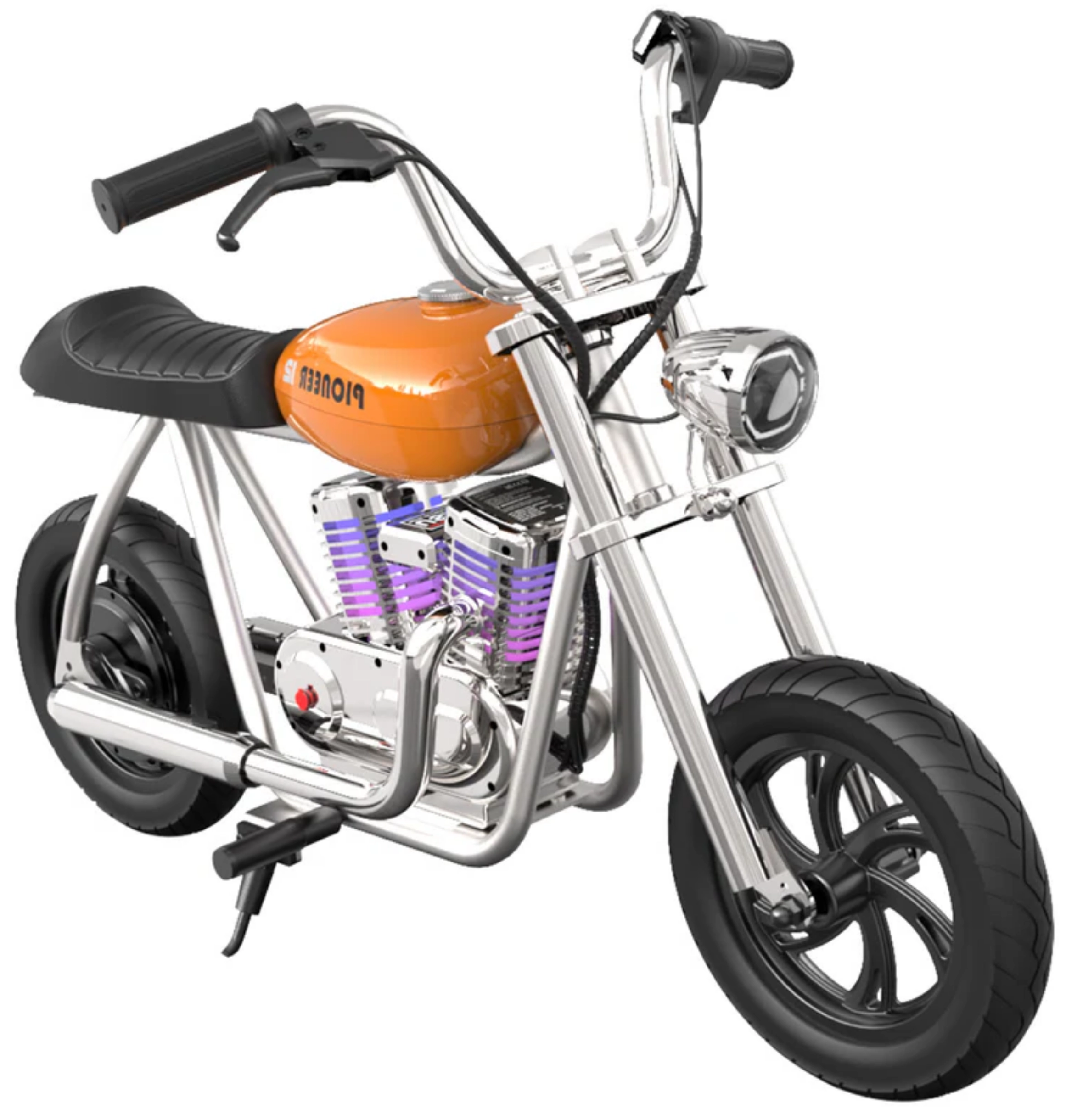 Detská elektrická motorka HYPER GOGO Pioneer 12 Plus APP ponúka ideálnu kombináciu výkonu, stability a štýlu. Vďaka robustnému kovovému rámu, odolným gumeným kolesám a atraktívnej oranžovej farbe s LED osvetlením je pripravená na jazdu po chodníku aj v ľahkom teréne. Integrovaný elektromotor 24 V / 160 W poskytuje plynulý záber a dojazd až 12 km na jedno nabitie.