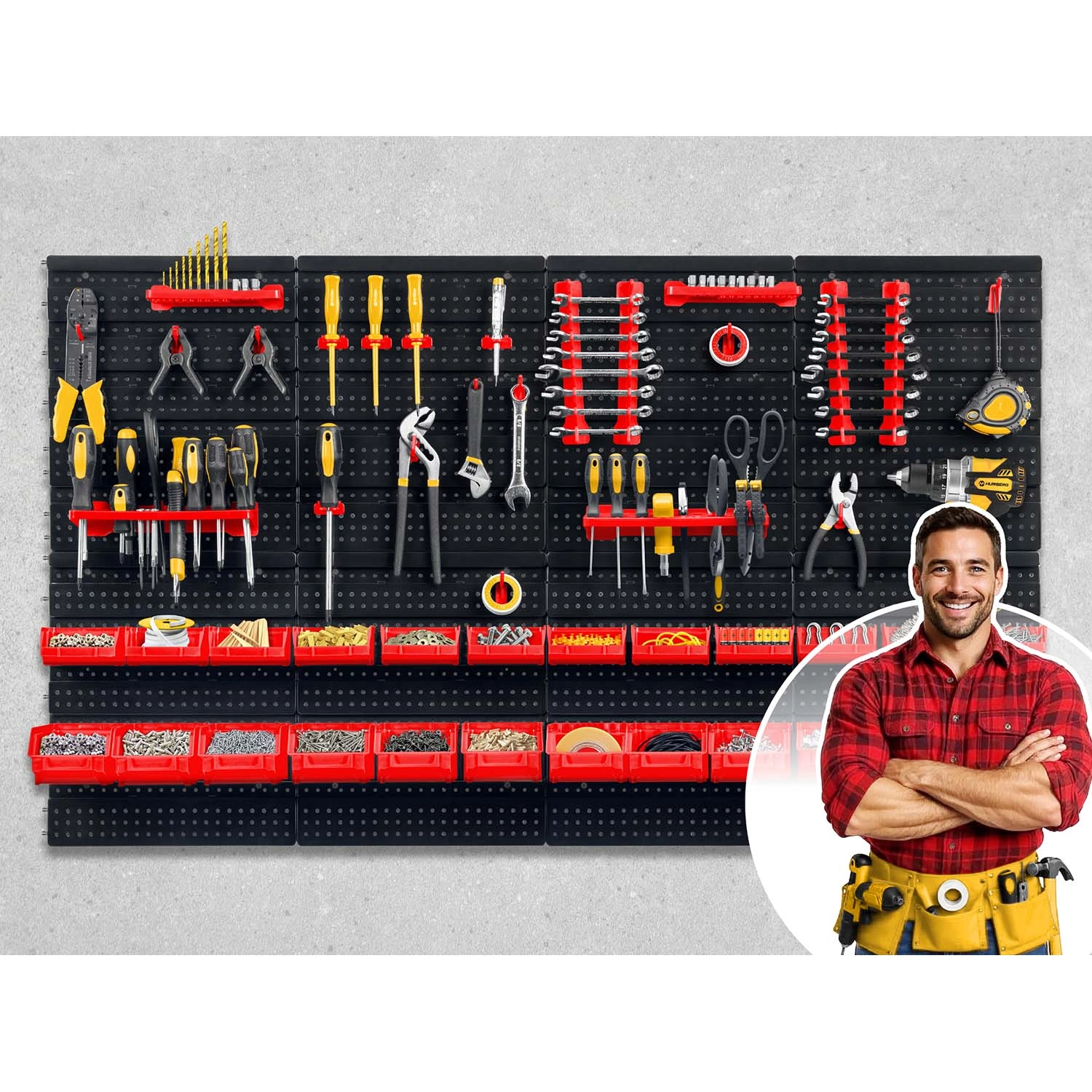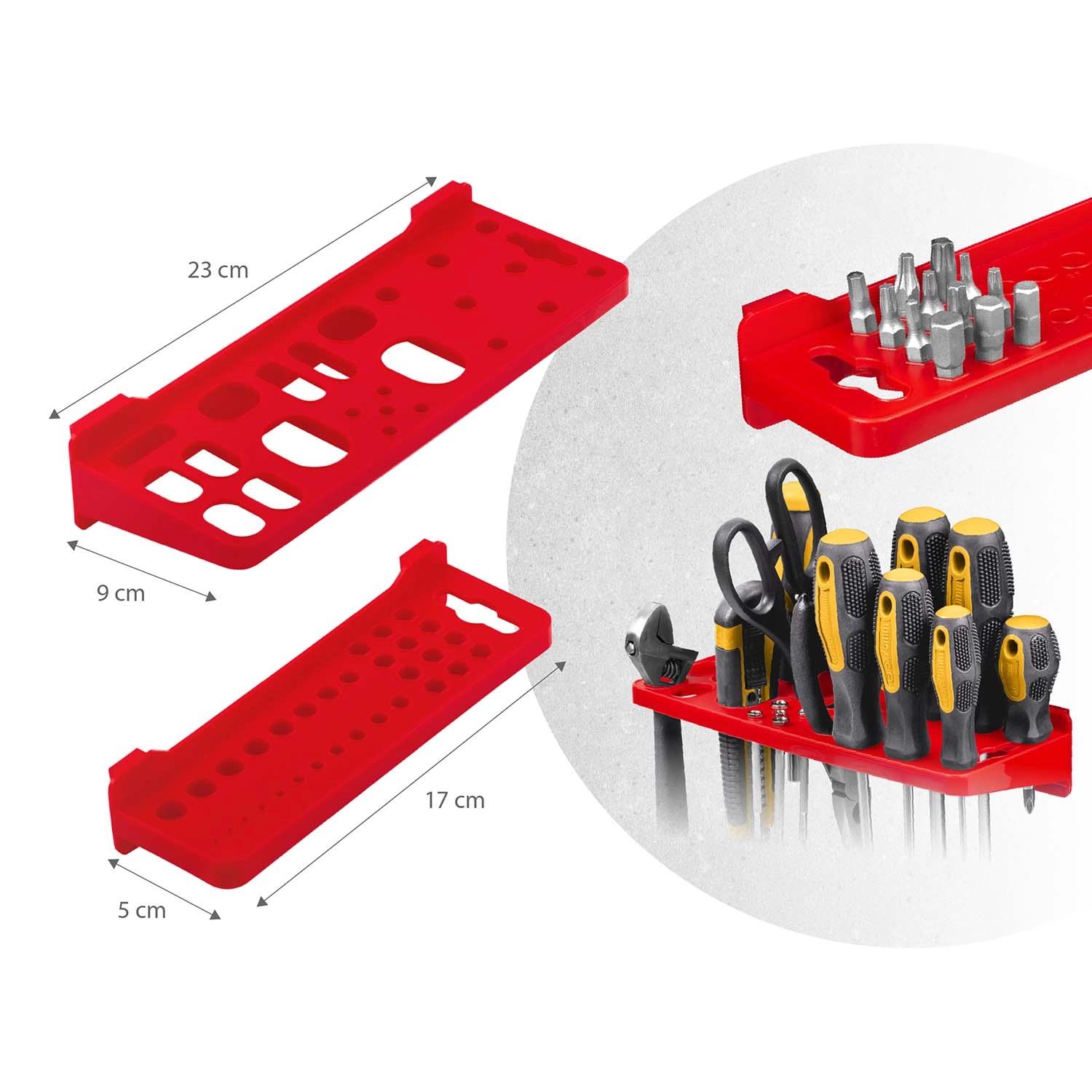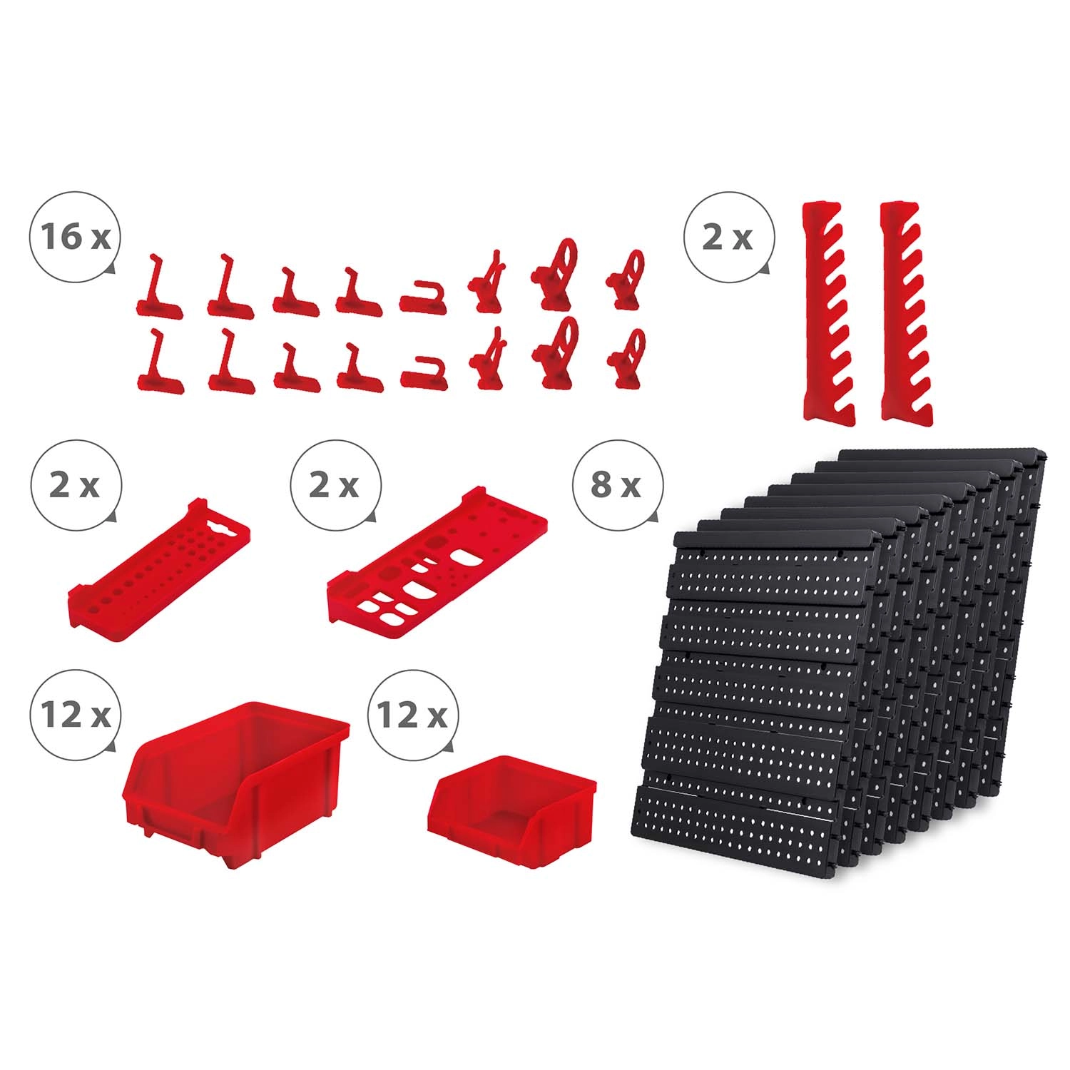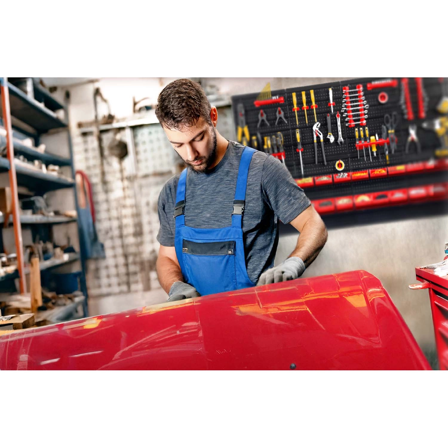 Šesť perforovaných panelov a 54 doplnkov umožní prehľadne uložiť ručné náradie, nadstavce aj drobné súčiastky a mať ich vždy na dosah.
