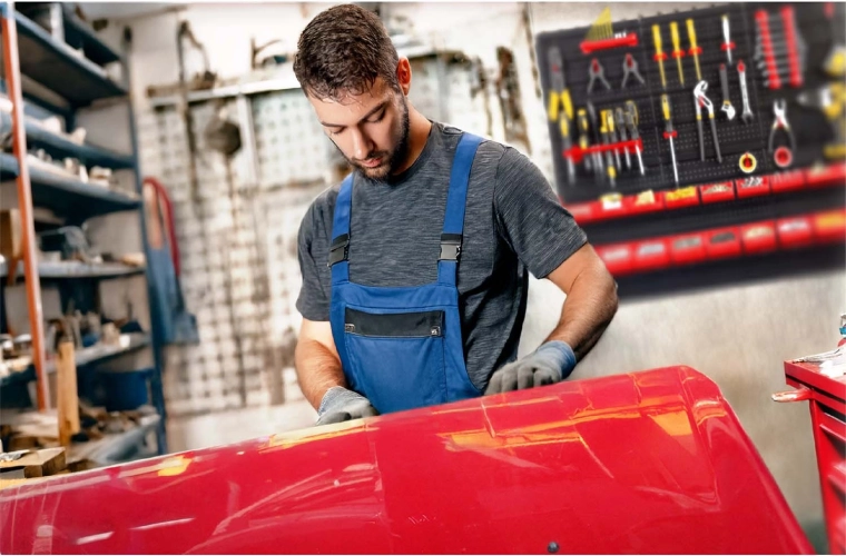- Maximálna prehľadnosť: všetko na očiach, rýchly prístup k náradiu aj drobnému spojovaciemu materiálu.
