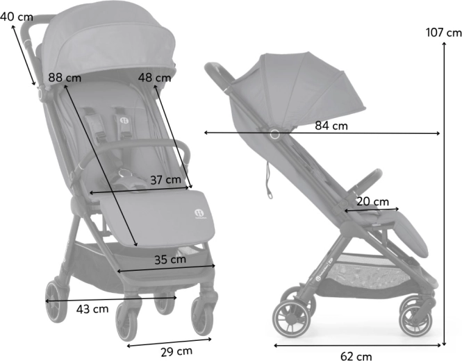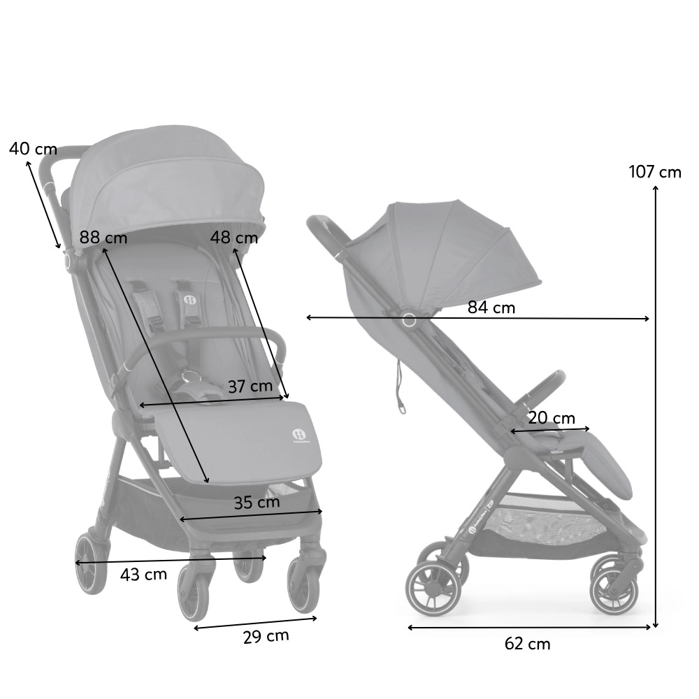 Jedným plynulým pohybom kočík zložíte do kompaktných rozmerov vhodných aj do kabíny lietadla. Ideálne, keď držíte dieťa alebo nesiete nákup.
