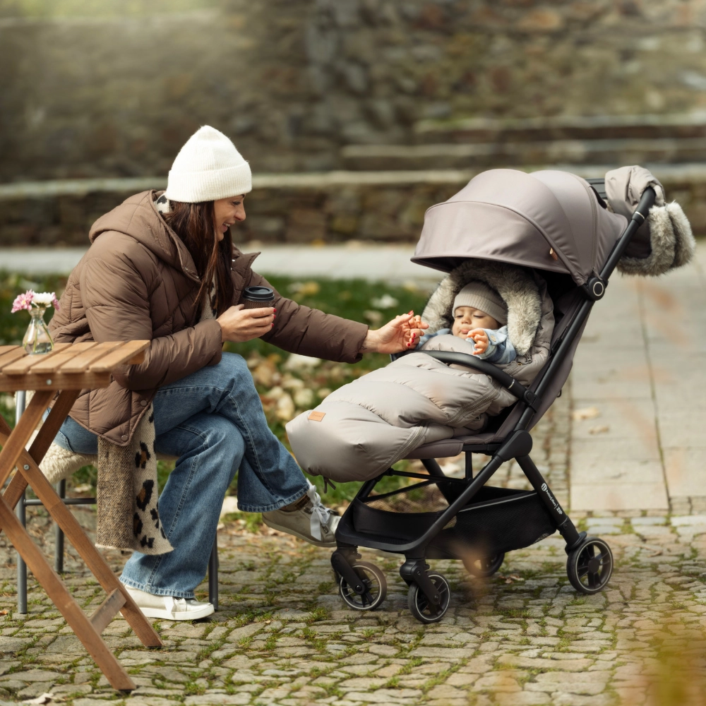 V meste aj v parku oceníte odpružené EVA kolesá (predné 5,5", zadné 6,5") pre hladkú jazdu a praktickú lankovú brzdu umiestnenú mimo krok. Úložný kôš 5 kg pojme nákup aj nevyhnutnosti. Odolné materiály sa ľahko čistia, takže kočík vyzerá skvele aj pri každodennom používaní.