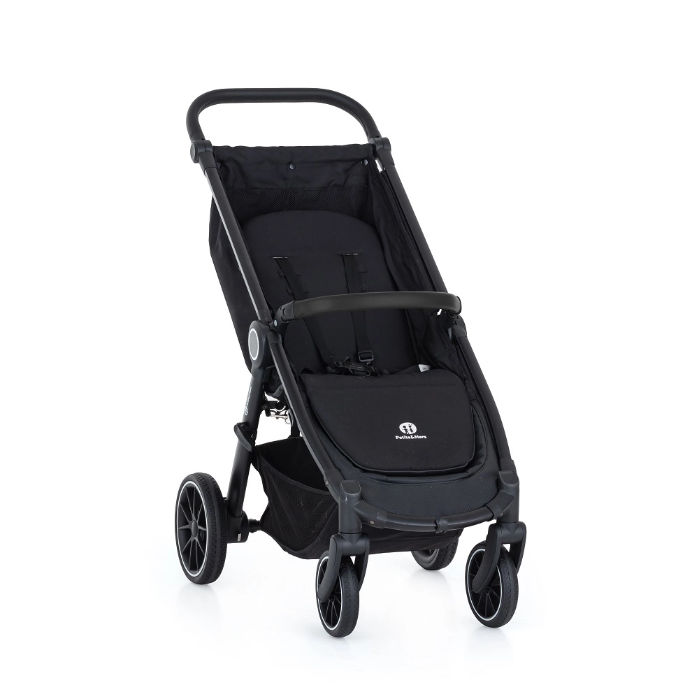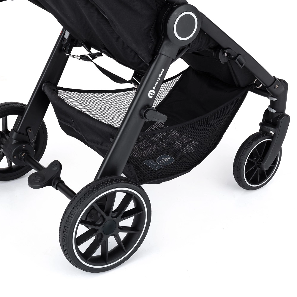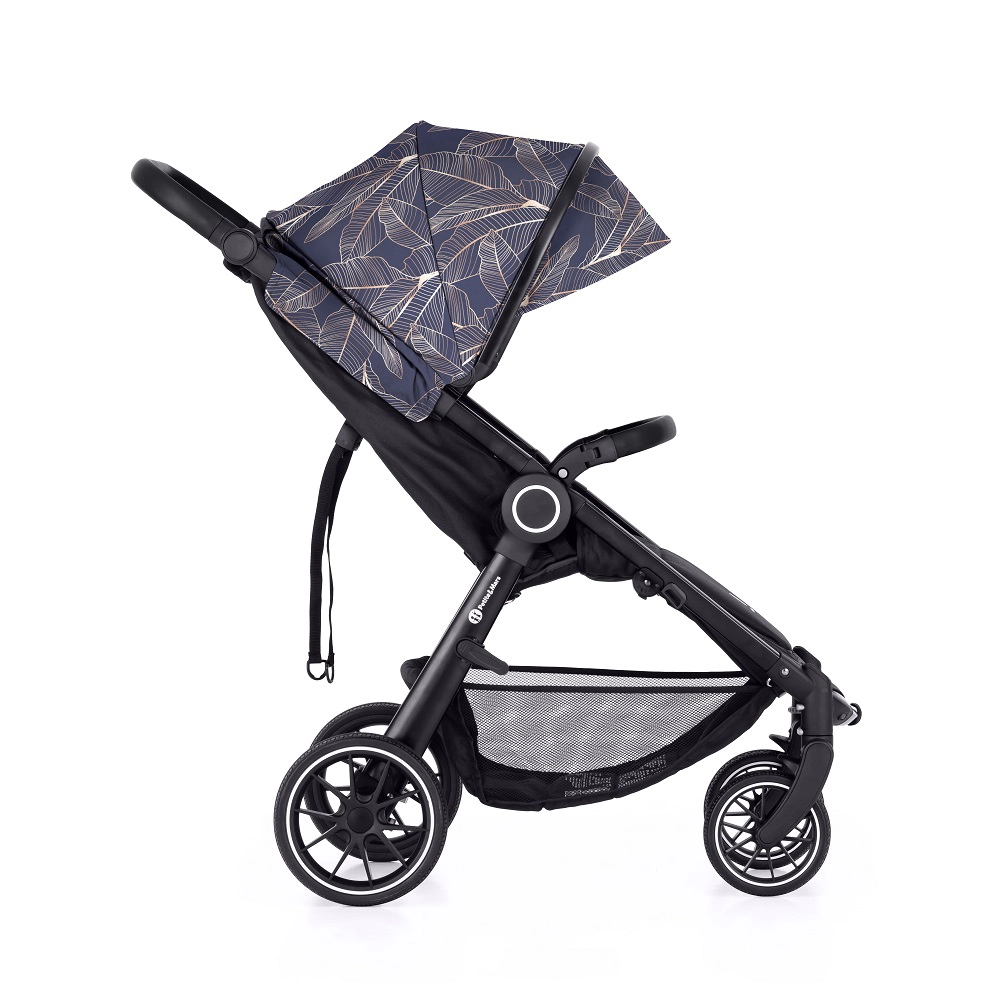 Petite&Mars Street+ RWS Black Limited 100 Palmtree je elegantný a praktický kočík, ktorý zvládne aj náročnejší terén. Stabilná, mierne odpružená konštrukcia a veľké gumové kolesá RWS poskytujú plynulú a bezpečnú jazdu bez rizika prepichnutia. Vďaka jednoduchému skladaniu jednou rukou a kompaktným rozmerom po zložení sa skvele hodí do auta aj menších priestorov.