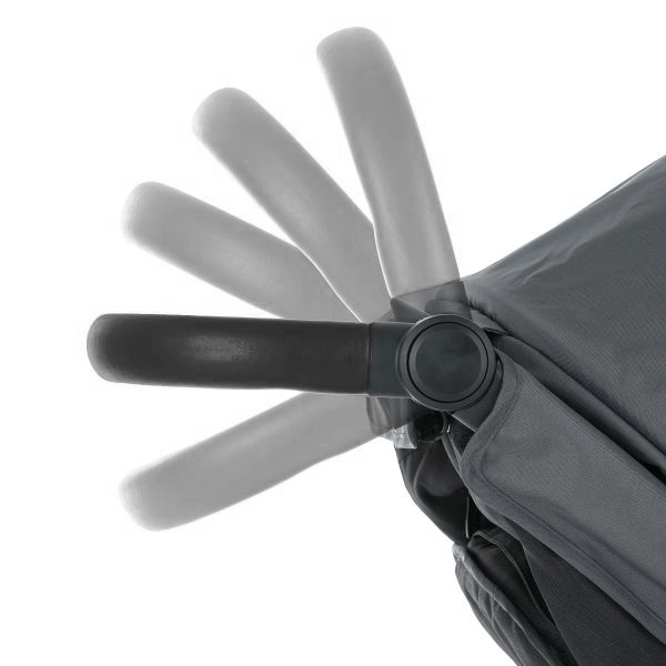 Výškovo nastaviteľná rukoväť z eko kože, veľká opierka chrbta a polohovanie takmer do ľahu pre maximálne pohodlie.