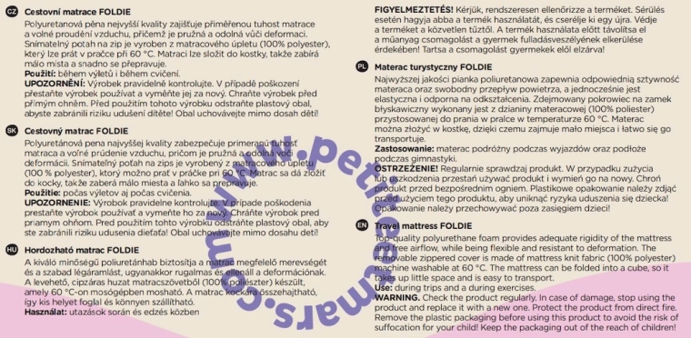 Praktický poťah na zips z odolnej matracovej pleteniny môžete jednoducho zložiť a vyprať pri 60 °C. Matrac sa rýchlo zloží do kocky, vďaka čomu nezaberá miesto v aute ani doma. Súčasťou balenia je taška s rukoväťou na jednoduché prenášanie a skladovanie. Vhodná do cestovných postieľok aj ako podložka na cvičenie.