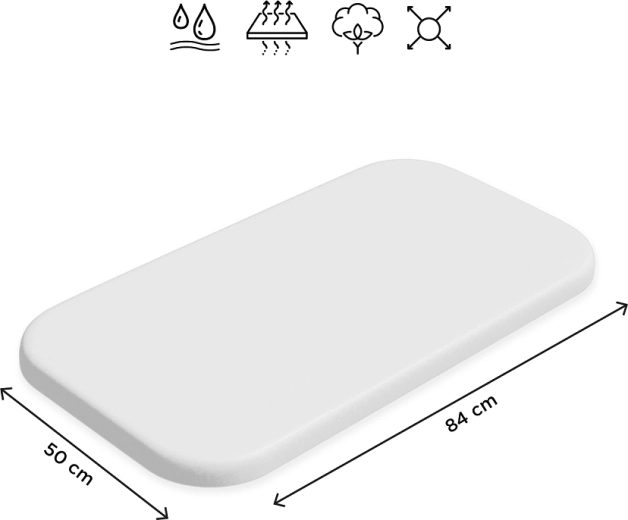 Praktická a pohodlná napínacia plachta pre bábätká s rozmerom 84 × 50 cm. Vďaka nepremokavej vrstve chráni matrac pred vlhkosťou, mäkký bavlnený jersey je príjemný na dotyk a priedušný. S gumičkou po obvode perfektne drží na matraci a možno ju prať až na 95 °C pre maximálnu hygienu.