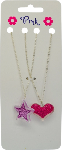 Objavte čaro hravej elegancie. Sada obsahuje dva náhrdelníky s pôvabnými príveskami – jeden v tvare srdca a druhý v tvare hviezdy. Vďaka univerzálnym farbám a precíznemu spracovaniu sa skvele hodia k šatám aj voľnočasovým outfitom.