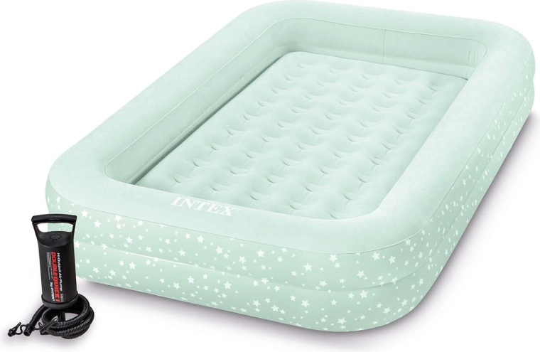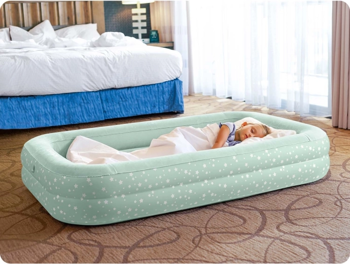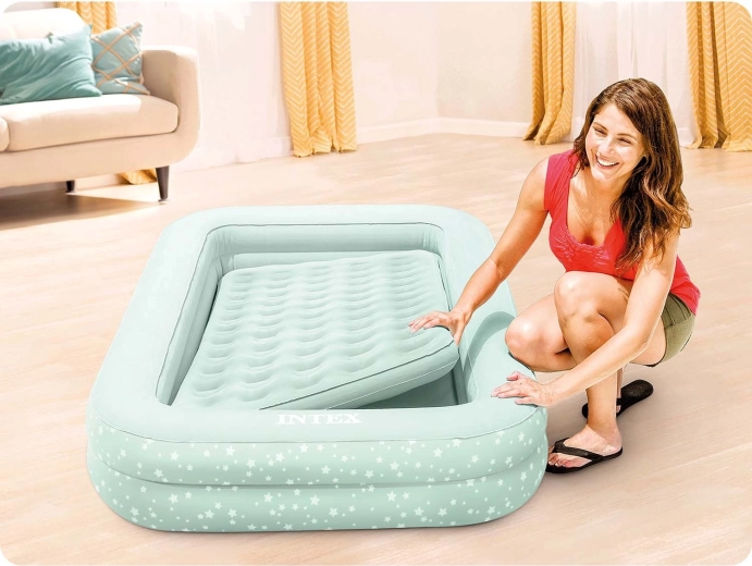 Nafukovacia detská postieľka INTEX je ideálnym riešením na cestovanie, prespávanie u starých rodičov aj ako dočasné lôžko doma. Vonkajší rám so zvýšenými bočnicami chráni dieťa pred skotúľaním a samostatný vnútorný matrac s jemným velúrovým poťahom poskytuje pohodlný spánok. Vďaka kompaktným rozmerom a nízkej hmotnosti sa ľahko prenáša v priloženej taške.