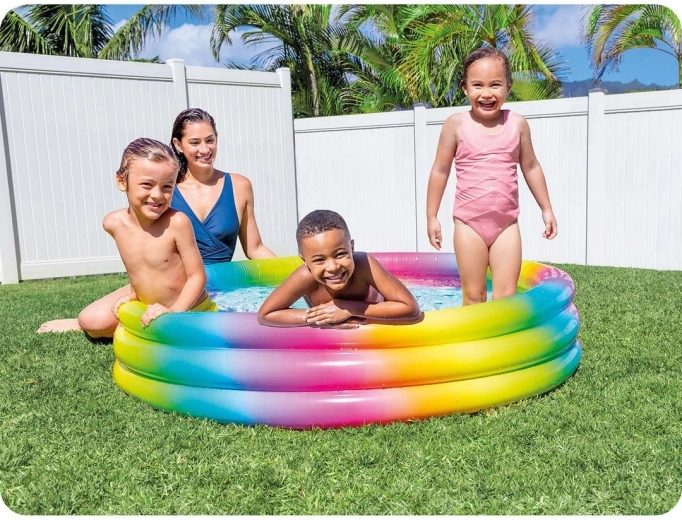 Urobte deťom radosť letným osviežením s bazénom INTEX Geometria. Tento farebný kruhový bazén s priemerom 147 cm a výškou 33 cm ponúka dostatok priestoru na bezpečné hranie, má tri nafukovacie prstence pre stabilitu a je vyrobený z odolného PVC pre dlhšiu životnosť. Vďaka kompaktným rozmerom sa hodí na každú záhradu či terasu a poteší deti už od 2 rokov.