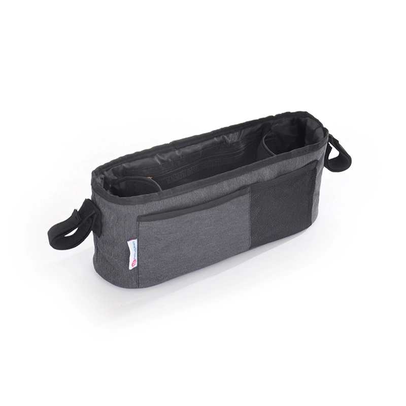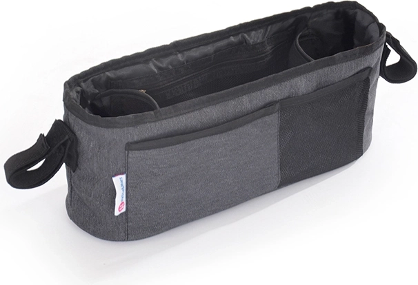 Praktický organizér na kočík s nastaviteľnými popruhmi a suchými zipsami udrží všetky nevyhnutnosti prehľadne poruke. Ponúka priestranný interiér s dvoma držiakmi nápojov, veľkou stredovou priehradkou a dvoma prednými vreckami. Vďaka univerzálnemu uchyteniu je vhodný pre väčšinu kočíkov a má maximálnu nosnosť 2 kg.