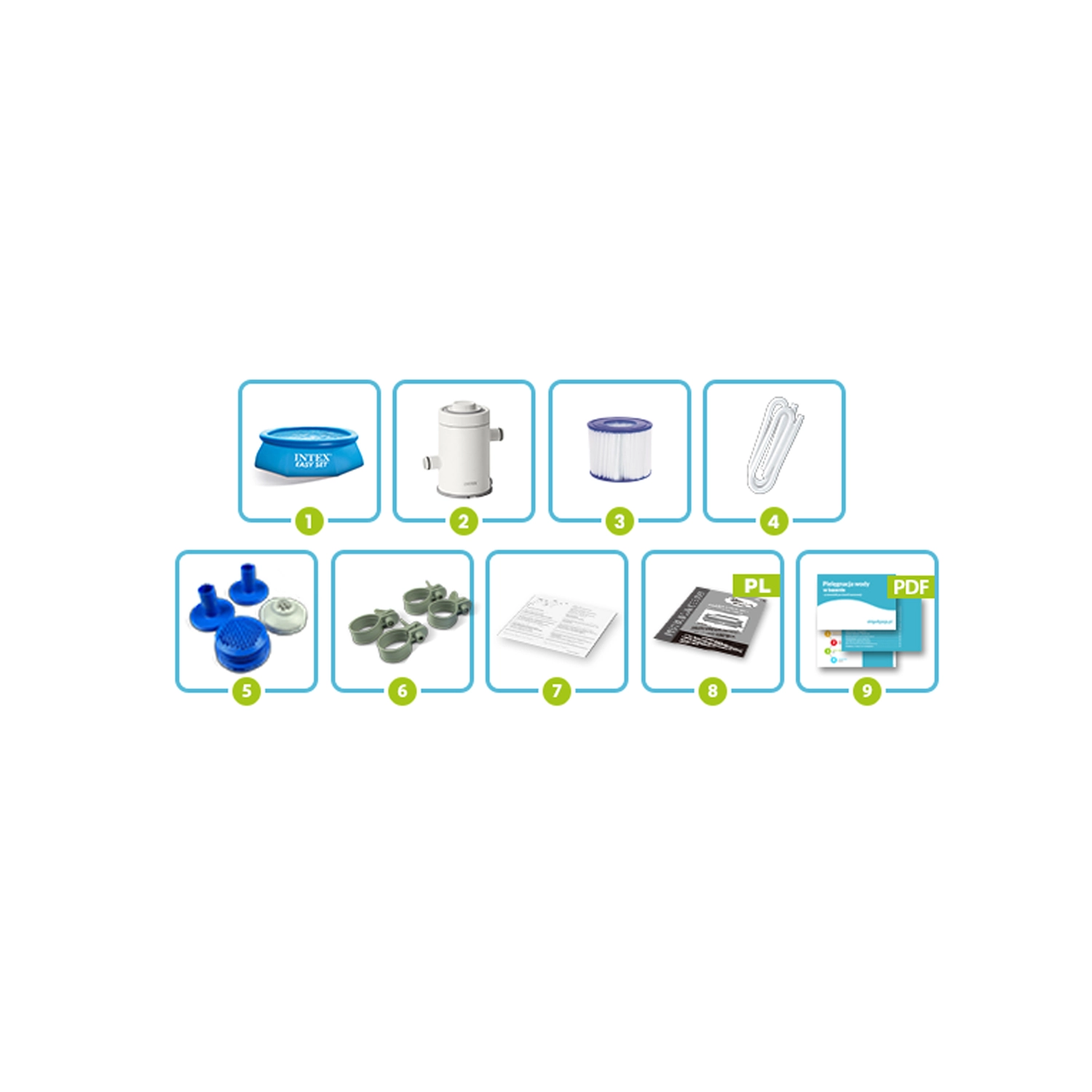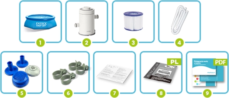 • Čistá voda: filtračná pumpa a filter typu H v balení.