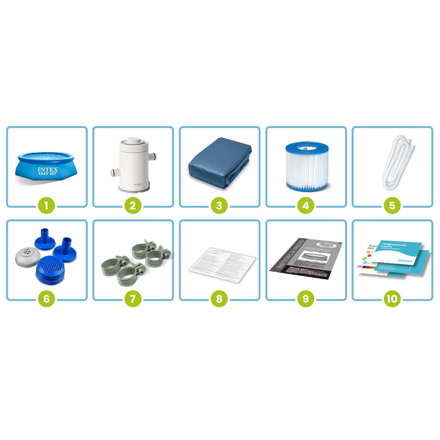 - Kompletná sada 4v1 – bazén, čerpadlo, kryt, filter + príslušenstvo.