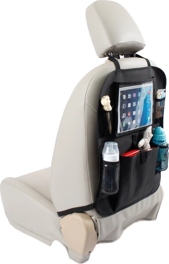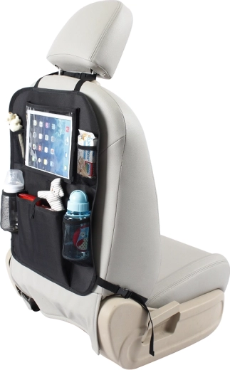 Šikovné rozloženie vreciek vám pomôže udržať poriadok: dole hlbšie vrecká na fľaše s vodou, hore menšie na drobnosti a uprostred extra veľká priehradka na hračky alebo desiatu. Odolný materiál a jednoduchá údržba sú ideálne na každodenné používanie v takmer akomkoľvek automobile.