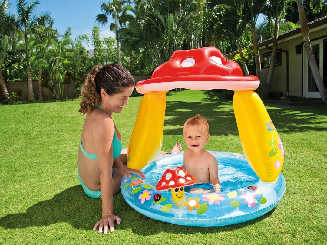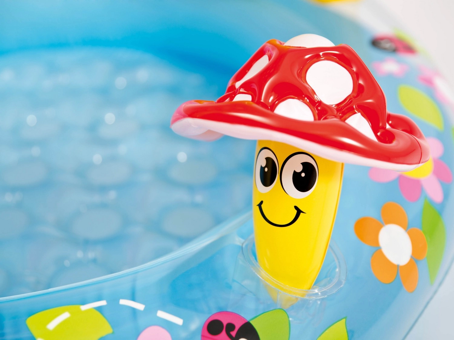 Urobte deťom radosť bezpečným vodným kútikom na záhrade aj na terase. Bazénik INTEX s veselou grafikou kvetov a ikonickým hríbovým prístreškom poskytne tieň v horúcich dňoch a príjemné prostredie pre prvé vodné radovánky. Vďaka mäkkej, textúrovanej podlahe sa batoľatá cítia pohodlne a stabilne.
