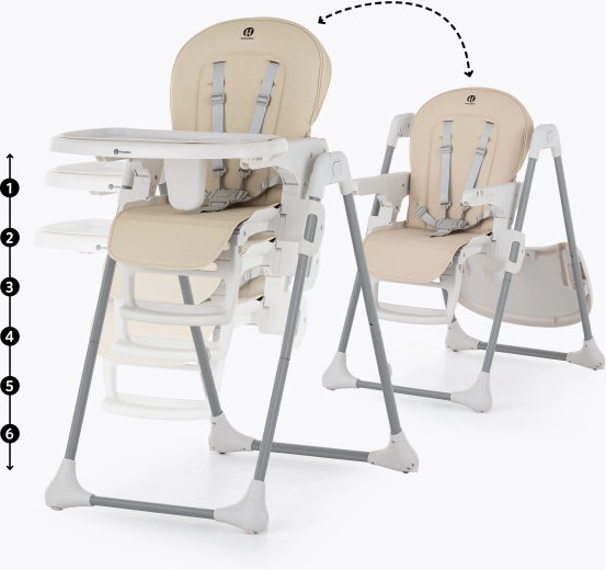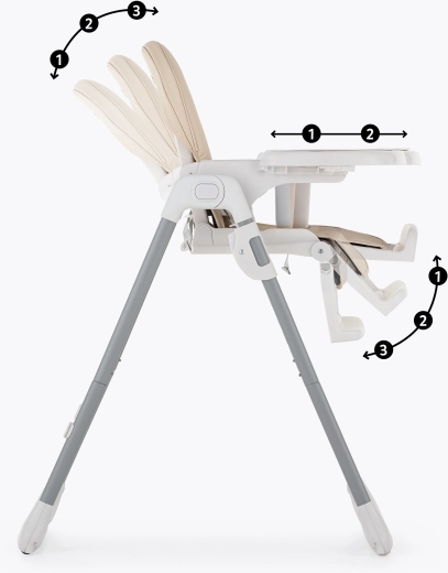 Dve polohy nastavenia priblížia podnos k dieťaťu tak, aby malo všetko pohodlne na dosah a sedelo stabilne.