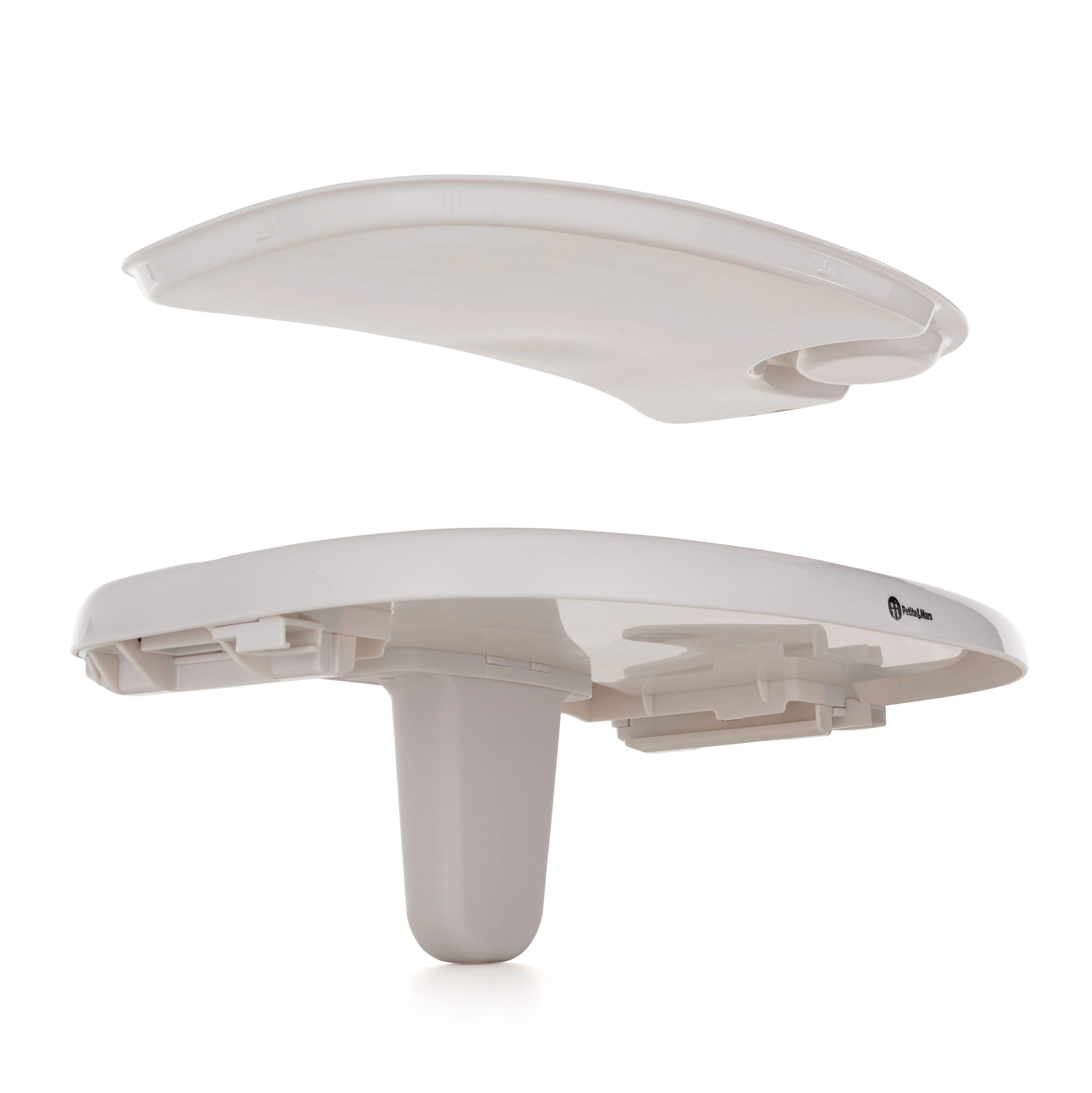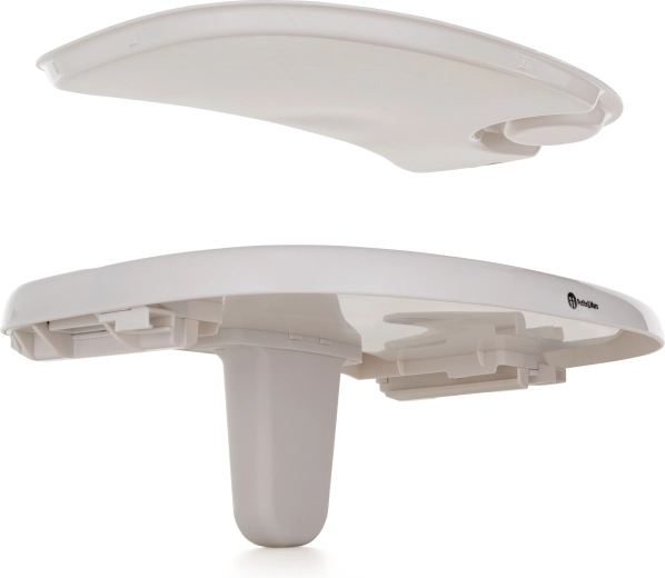 Široký podnos sa skladá zo spodnej a tvarovanej hornej časti s miestom na pohárik; horný diel je možné umývať v umývačke riadu.