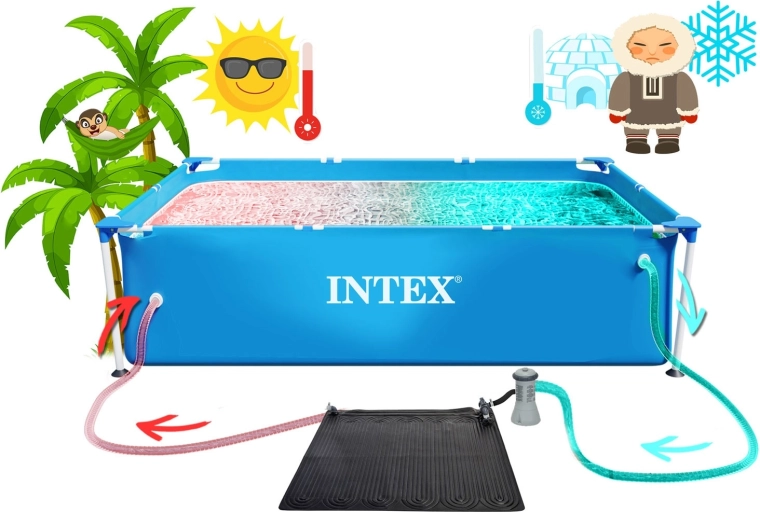 Solárna vyhrievacia podložka INTEX využíva energiu slnka na postupné ohrievanie vody, ktorá prúdi cez špirálové kanáliky vo vnútri podložky. Vďaka robustnému PVC prevedeniu je odolná a ľahká na prenášanie. Pripojenie k filtračnému čerpadlu je otázkou chvíľky – podložka sa dodáva s adaptérmi a rýchlospojkami, takže inštalácia je jednoduchá a bez náradia.