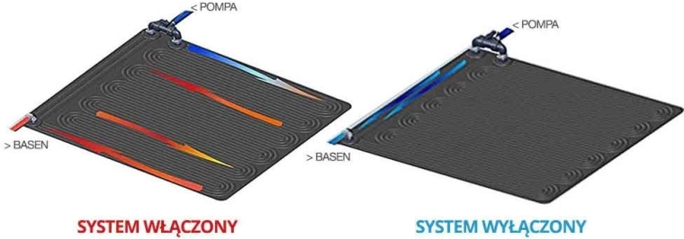 Pre väčšie bazény je možné prepojiť viac podložiek v sérii a dosiahnuť tak vyšší ohrev. V prípade potreby možno prietok nasmerovať tak, aby podložku obišiel, a to bez odpojenia čerpadla. Riešenie je úplne bez nákladov na elektrinu, šetrné k prírode a dlhodobo ekonomické.